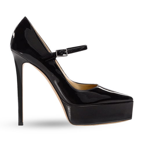 Spitze Lack-Pumps mit verstellbarem Riemchen, 3,5 cm Plateau und 13 cm Absatz