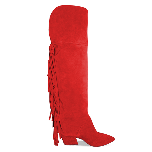 Schlauchstiefel mit spitzer Velourslederkappe mit Fransen und mittelhohem 60mm Absatz