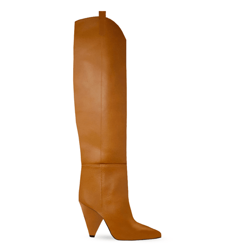 Schlauchstiefel mit spitzer Zehenpartie aus echtem Leder mit 90mm mittlerem Kegelabsatz
