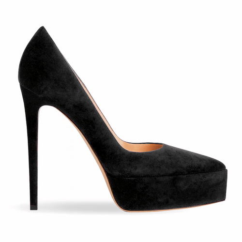 Spitze Pumps mit Obermaterial aus Wildleder, Plateau 3,5 cm und Absatz 13 cm
