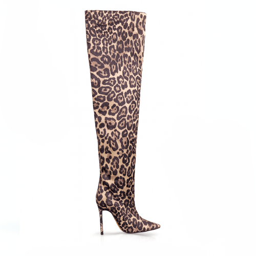 Bota alta por encima de la rodilla con punta afilada en raso con tacón de aguja de 80mm, 100mm o 120mm