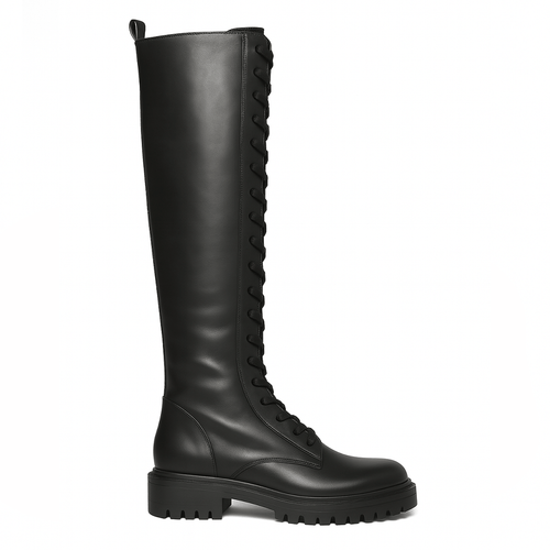Bota de piel auténtica con punta redonda y suela de goma con dibujo de tanque