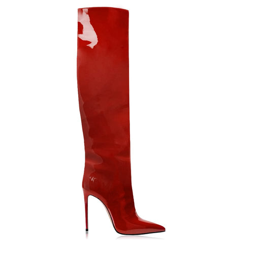 Bota tubular puntiaguda en charol con tacón stiletto de 100mm o 120mm