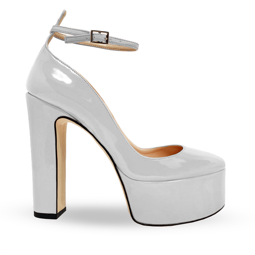 Escote de punta redonda en charol, correa de tobillo de plataforma de 4 cm y tacón de 13 cm