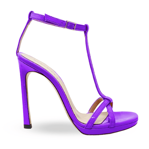 Sandalia de punta redonda con tira de charol, pulsera ajustable en el tobillo, tacón de 11 cm de altura y plataforma de 1 cm