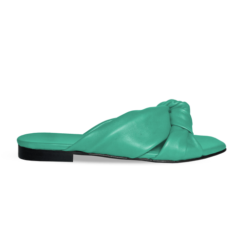 Sandale plate avec tige en cuir véritable et bande avant nouée