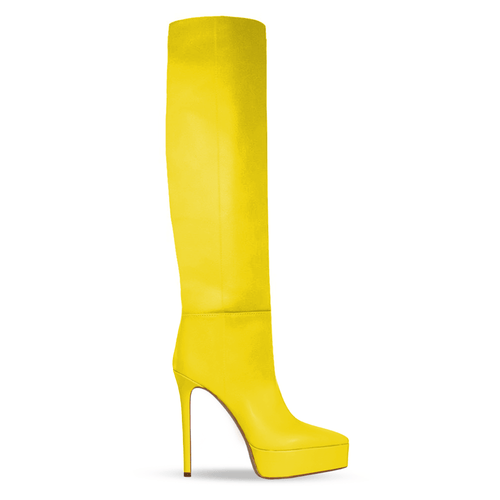 Botte tubulaire sous le genou en cuir véritable avec talon aiguille et plateau de 2,5 cm