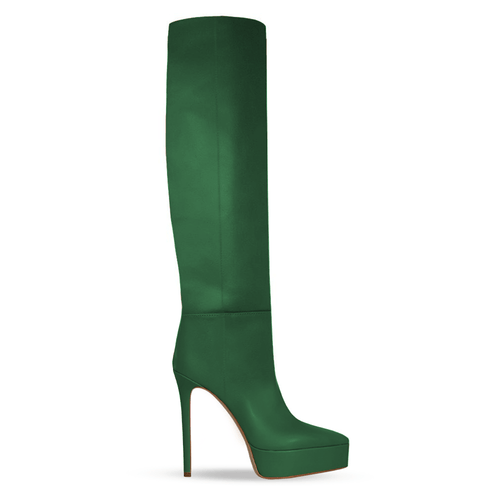 Botte tubulaire sous le genou en cuir véritable avec talon aiguille et plateau de 2,5 cm