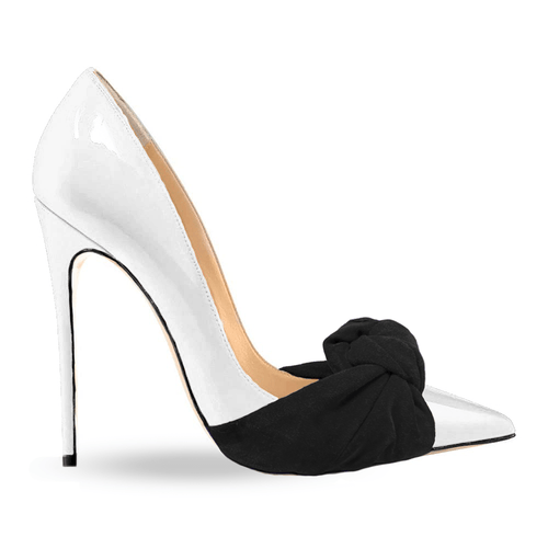 Décolleté à bout pointu en cuir verni avec nœud en daim véritable, talon aiguille de 100 mm ou 120 mm