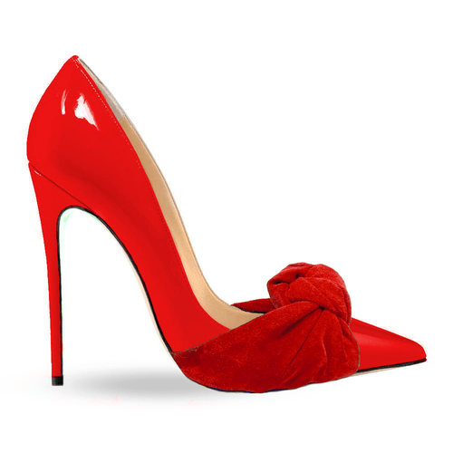 Décolleté à bout pointu en cuir verni avec nœud en daim véritable, talon aiguille de 100 mm ou 120 mm