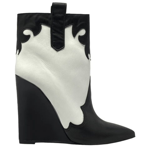 Bottine texane tubulaire à bout pointu en cuir véritable avec talon compensé