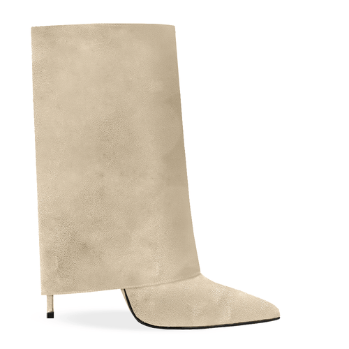 Stivaletto a punta sfilata in camoscio con risvolto e tacco a spillo 100mm o 120mm