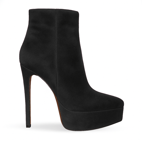 Stivaletto a punta sfilata in vero camoscio con zip interna, plateau da 3.5cm e tacco da 13cm