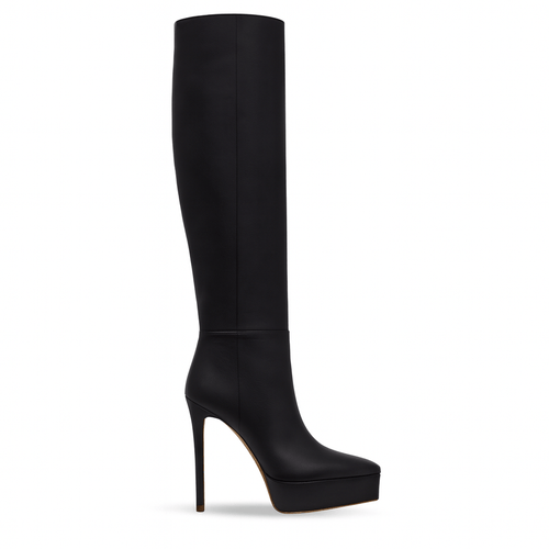 Stivale tubolare sotto al ginocchio in vera pelle con tacco a spillo e plateau da 2,5cm