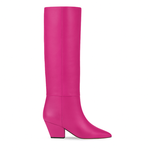 Stivale tubolare sotto al ginocchio in vera pelle con tacco largo 60mm