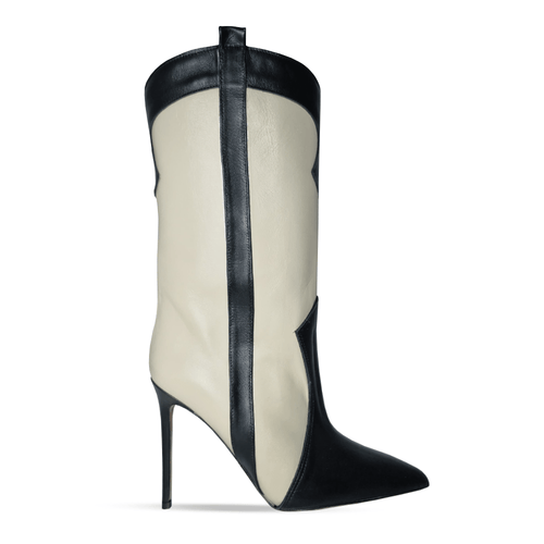 Texan ankle boot with pointed toe in genuine leather with 100mm or 120mm stiletto heel