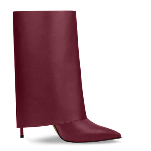 Pointed toe boot in genuine leather with turn-up and 100mm or 120mm stiletto heel