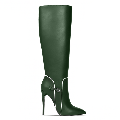 Tubular knee-high boot in genuine leather with 80mm, 100mm, or 120mm stiletto heel