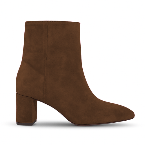 Pointed toe ankle boot in genuine suede with internal zipper and 70mm heel