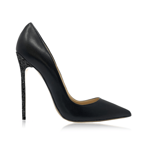 Pointed leather pumps with glitter stiletto heel of 80mm, 100mm, or 120mm